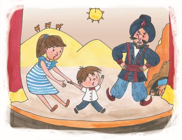 – Хорошая новость! – сказала мама. – Нам на работе дали билеты в детский театр. Будут показывать сказку про волшебную лампу Аладдина. Хочешь? И тётю Аню с Олей возьмём.