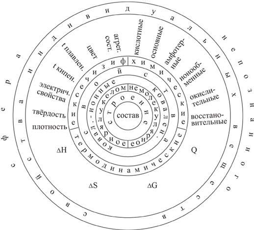 Если ученику предлагается описать на основе чувственных восприятий образец железа, то он описывает данное вещество не как конкретное, а как мысленно нерасчленённое единичное. Он может указать цвет, агрегатное состояние, «тяжесть», взвесив кусок на ладошке, то есть то, что воспринимает непосредственно органами чувств. Конкретным понятием знание о железе станет для ученика тогда, когда он опишет не только ощутимые, но и измеряемые физические и химические свойства, то есть поведение железа в различных реакциях, когда он установит связи между составом, строением и свойствами. В конкретном понятии железа ученик объединяет (синтезирует) все знания о железе.