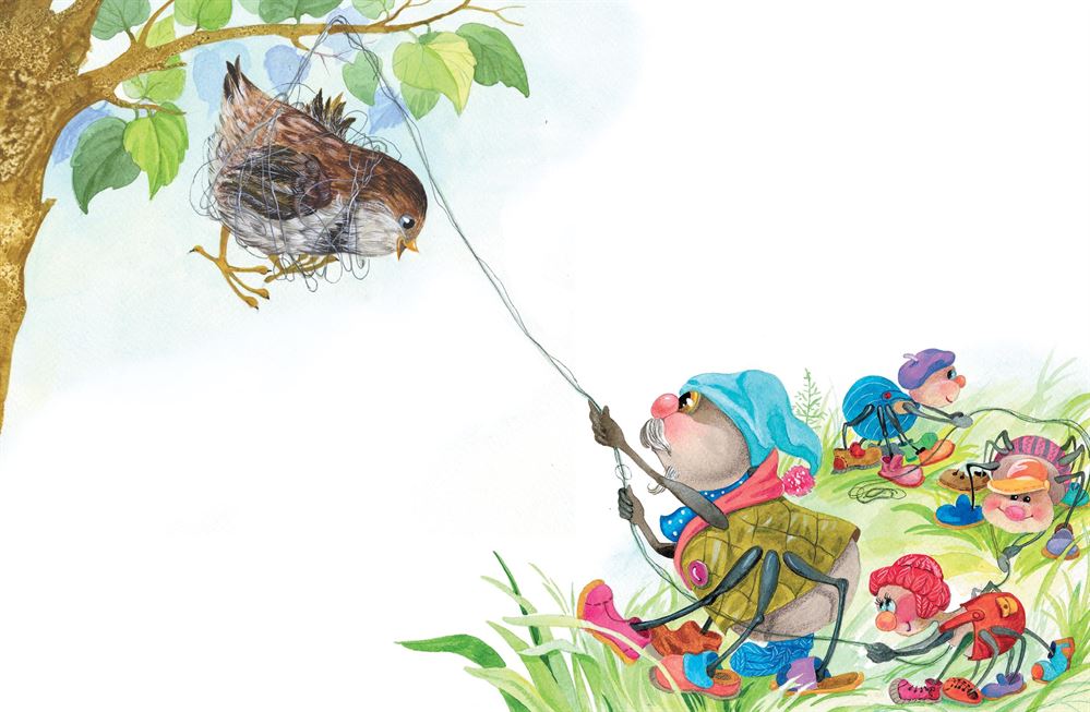 – Оплетём его паутиной, перебросим верёвку за сучок повыше гнезда и поднимем все вместе, – сказал дедушка. – За работу!