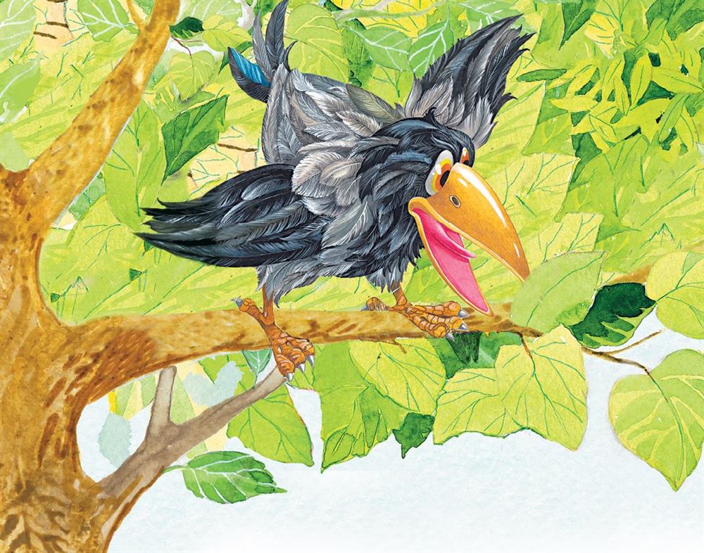 Вдруг прилетела ворона, села на ту же лавочку и громко закаркала:
