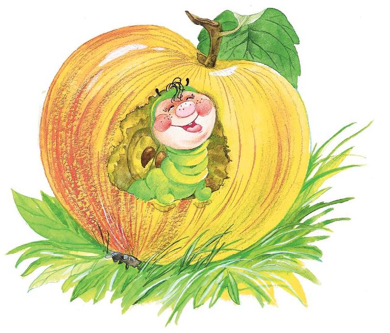 В одном яблочке на большой раскидистой яблоне жил маленький червячок. Жил он с папой и мамой, которые очень его любили и поэтому строго-настрого запрещали ему выползать из яблока. Вдруг с ним случится что-нибудь? А ему так интересно было посмотреть, что там снаружи. Один раз в щёлочку двери он увидел какого-то жучка, а в другой раз – кусочек синего неба.