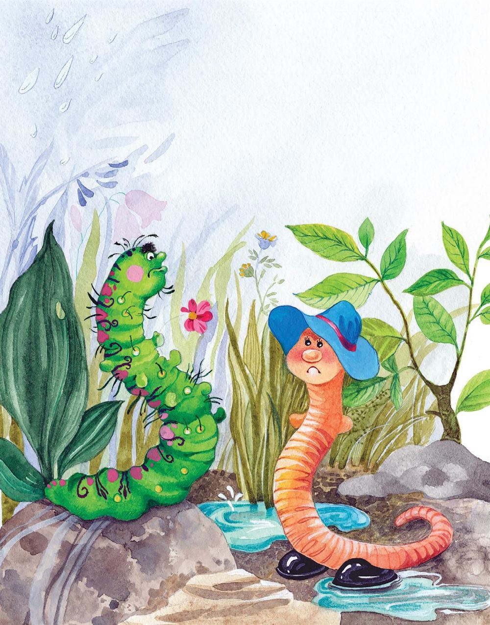 Дождевичок совсем растерялся. У него не было знакомых гусениц, и он не знал, чем они отличаются от простых земляных червяков.