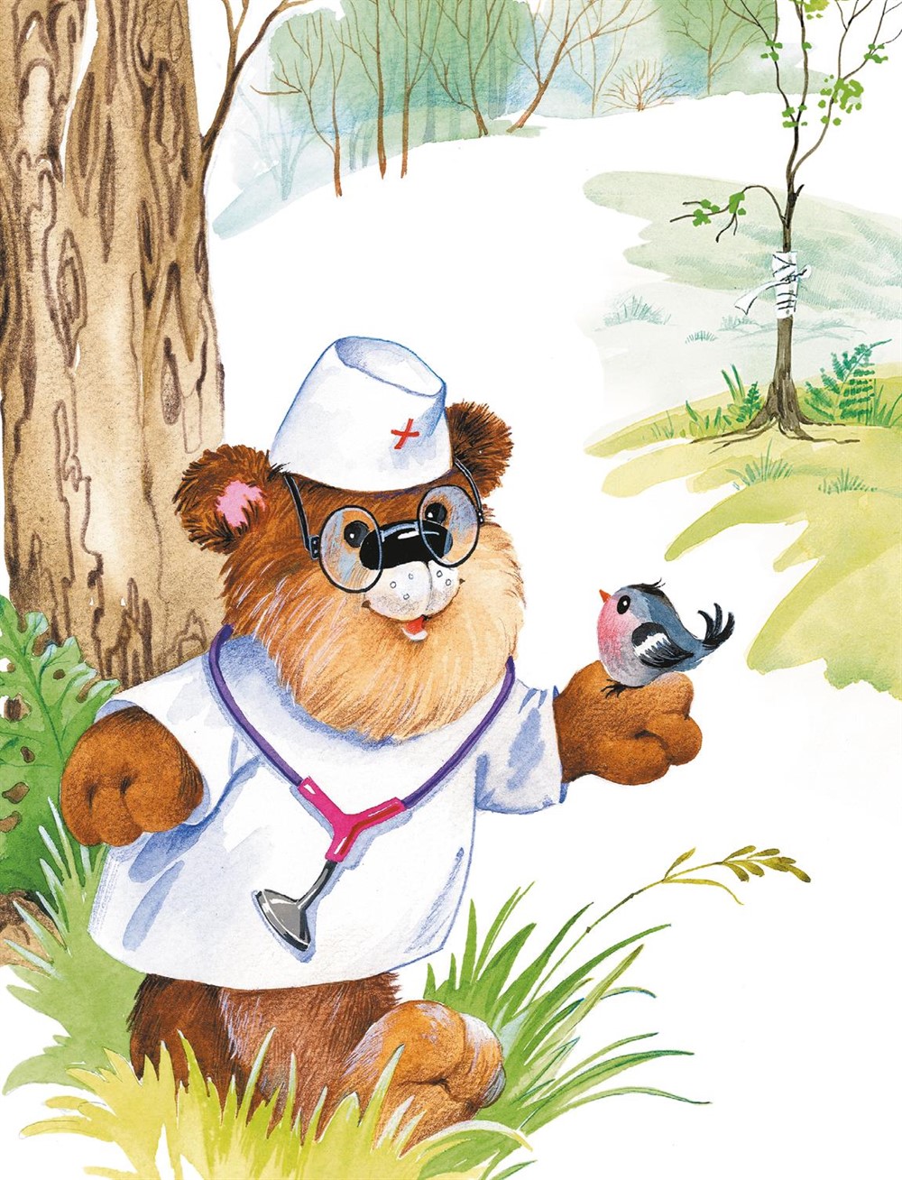 Но зайчиха всё-таки позвала доктора. Самым лучшим доктором в сказочном лесу был медведь-костоправ. Он был огромным, со здоровенными лапищами. Однако успешно лечил даже маленьких лесных птичек, потому что он был очень добрым и заботливым доктором. Вот и лису медведь положил в лесную больницу, поставил ей гипс на обе лапы, и она ещё долго никого не беспокоила.