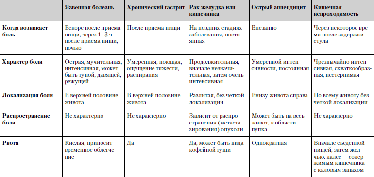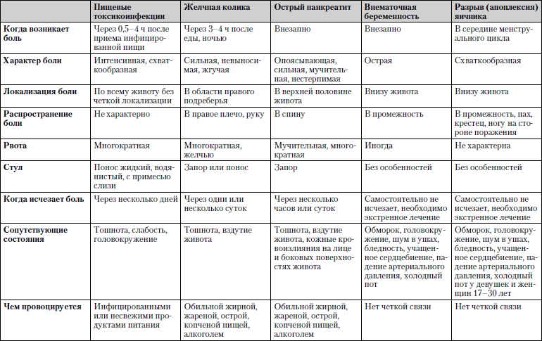 Сравнительная характеристика заболеваний, при которых боль в животе является одним из ведущих симптомов, представлена в табл. 1.1.