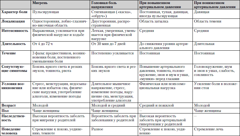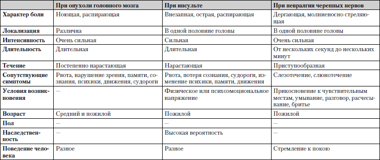 Сравнительная характеристика наиболее часто встречаемых заболеваний, при которых головные боли являются ведущим симптомом, представлена в табл. 1.7.