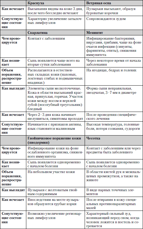 Во многих случаях характер сыпи свидетельствует об определенном заболевании (табл. 1.8).