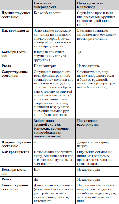 Сравнительная характеристика заболеваний, при которых нарушение глотания является одним из ведущих симптомов, представлена в табл. 1.10.