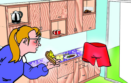 Утром Мишка встал раньше обычного. Самочувствие было прекрасным, настроение великолепным. Только очень хотелось пить, и Козлов, весело припевая, потопал на кухню. Там уже хлопотала сестра Светочка – симпатичная зеленоглазая девчушка, с такими же огненными, как у Мишки, волосами. Света уже была первокурсницей и собиралась позавтракать перед тем, как направиться в институт. Она как раз подносила ко рту бутерброд с сыром, как вдруг в кухню вошли… трусы! Обыкновенные пацанячьи трусы, зелёные, в белый грох. Трусы направились к столу, и вскоре в воздухе «залетал» чайник, сам по себе наливающий кипяток…