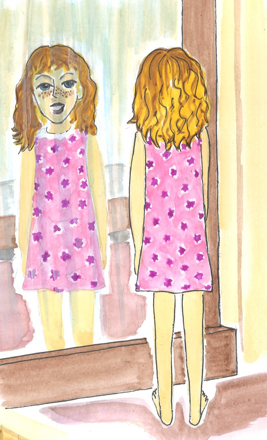 Люша полежала немного, встала. Подошла к зеркалу. Потянулась. Неумытые глаза с трудом открывались. Девочка потёрла глаза кулаками. Поморгала. Вроде стало лучше. В отражении увидела, что ночнушка сильно помялась. Переодеваться Люше не хотелось. Она расправила рубашку, пригладила руками помятые места. Ей понравилось. Но что делать с волосами?