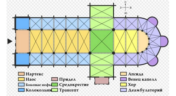 9) The middle part of the temple. A place for parishioners. In orthodox (orthodox) churches, the service is accepted standing, in Roman Catholic and Protestant – sitting on benches (sometimes, on the sign of the priest, rising).