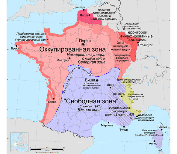 The occupation of half of France, Germany and Italy, 1940. In Toulon, the main part, maintaining a high degree of combat capability, is based on the French fleet. The resort city of Vichy becomes the capital of the new government