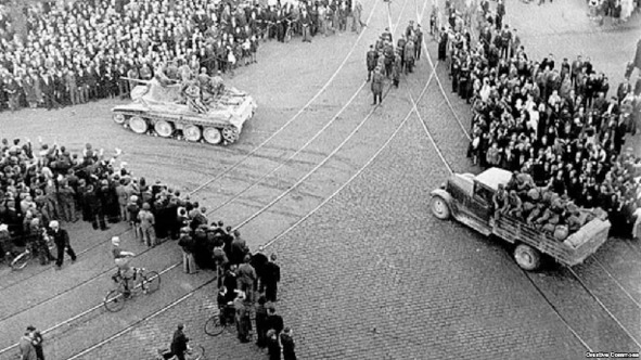 Parade, or at least a demonstration of Soviet troops in Riga, summer 1940.