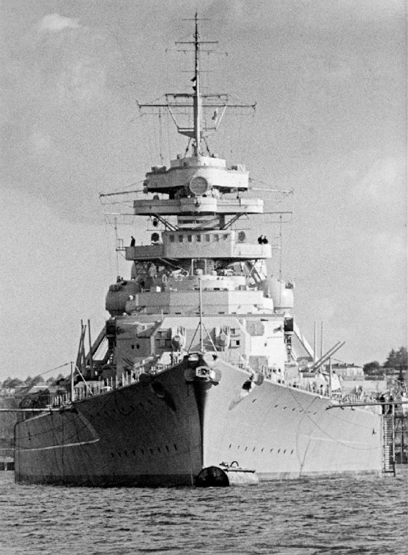 The German battleship Bismarck, the world’s largest ship of its time. Displacement fully equipped – 50 000 tons (twice as high as the average aircraft carrier), length 251 m, width 36 m, draft 10 m. Speed maximum 55 km. h, the range of autonomous navigation is 17,000 km. The main armament is eight 380 mm. guns in four towers.