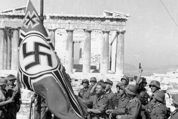 The large losses of paratroopers do not allow further operations to be carried out to capture Cyprus and the Suez Canal immediately. Losses of Greece: 14,000 killed, allies 900, with 14,000 prisoners, the Wehrmacht 1,450 killed, Italy – about 20,000 people. It is believed that the need to seize Yugoslavia, as well as the stubborn resistance of Greece, delayed the beginning of the invasion of the USSR from May 15, 1941 to June 22, and these five weeks had a decisive effect on the course of the entire war. It seems that Serbia has returned the debt of Russia, since 1914. In the photo – German soldiers deploy a Nazi flag near the Athenian Acropolis. April-May 1941