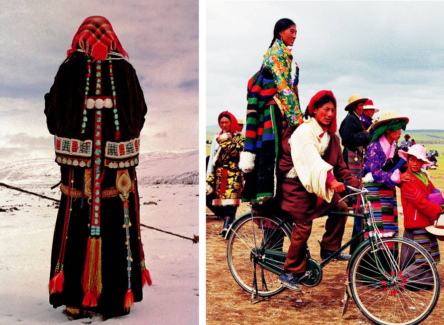 В Тибете женская одежда более красочна, чем мужская, не только по цветовой гамме, но и по стилю и украшениям. Это, конечно, связано с желанием подчеркнуть женскую красоту.