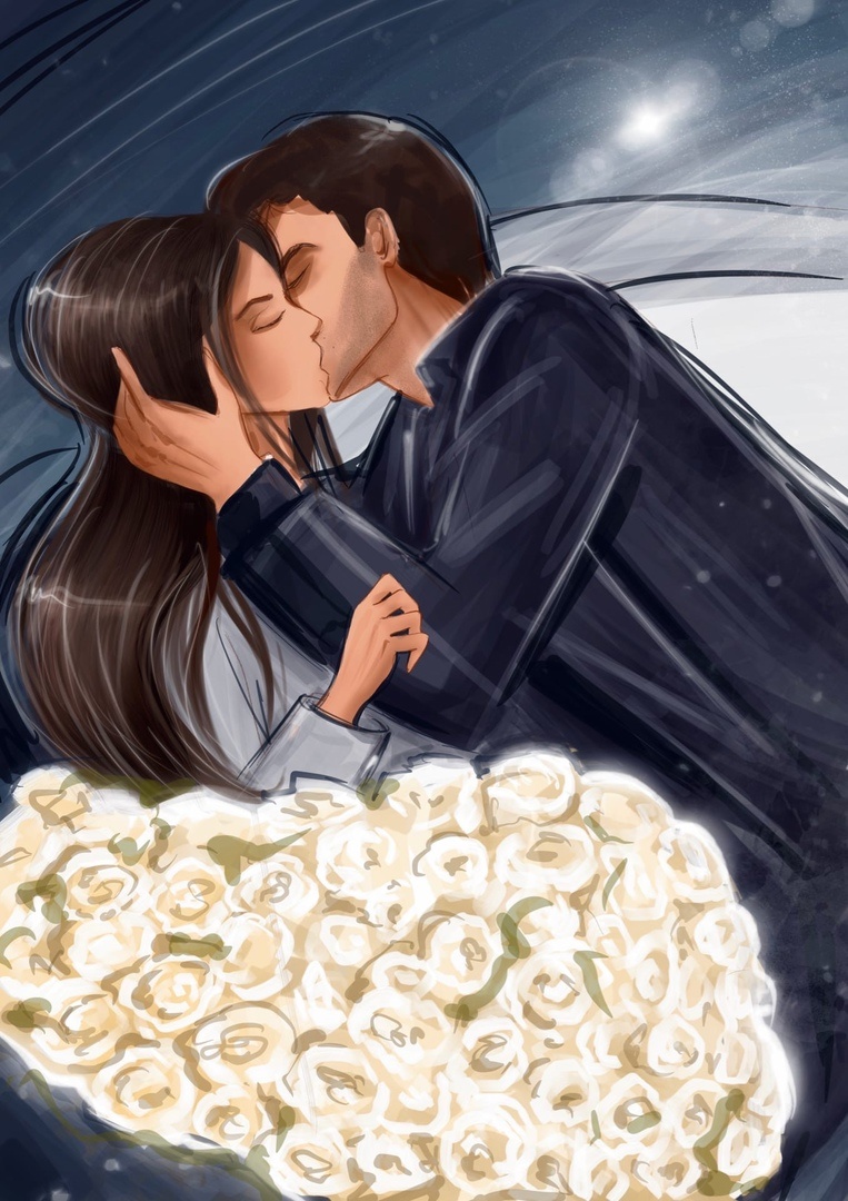 Он посасывал мою нижнюю губу, не сильно, но очень волнительно. Но мне все равно не хватало его мощного горячего языка, и я, набравшись наглости, стала робко проникать в его рот. Не встретив сопротивления, я продолжила свой путь, пока не нашла то, что искала. С животным рыком хищника, мой темный ангел подмял меня под себя, и опрокинул на сиденье, спихнув букет под ноги.
