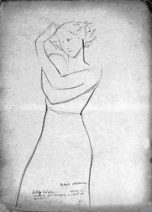 В Бомбее, в 1941 году, Хильда вновь открыла студию танца, которую она назвала «Школа современного художественного движения». Магда делала эскизы костюмов и декораций для ее спектаклей. Сохранилось несколько картин с изображением танцующей Хильды и несколько карандашных портретов Примаверы, выполненных в 1946–1948 годах (рис. 4 цв. вкл.).