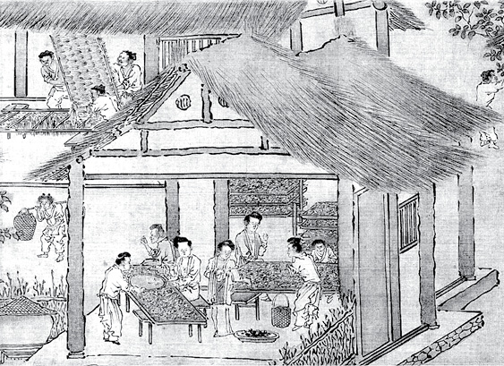 Кусочек шелка из долины Хуанхэ, самый старинный фрагмент этой ткани в мире, указывает на то, что китайцы занимались шелководством еще в 3630 году до н. э.[12]. Похоже, с самого своего возникновения шелководство было по большей части женским занятием: женщины нарезали листья шелковицы, чтобы кормить шелковичных червей – личинок тутового шелкопряда (Bombyx mori), собирали коконы и кипятили их, чтобы распустить шелковые нити, а затем пряли, красили нити и ткали из них полотно.