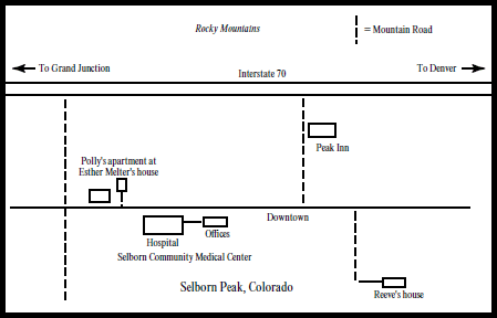 “Our medical center serves half a dozen communities around here,” Dr. Snyder told her, crossing his arms in his lab jacket. Even when he spoke about trivialities, his voice was low pitched and soothing. Polly enjoyed listening to it. “If you had to be injured at all, you were fortunate,” he continued. “You were closest to Selborn Peak, even though we’re several miles off the interstate. But when I first saw you in the car…” A haunted expression that she couldn’t interpret crossed his face but it made her suddenly want to offer him words of comfort. Strange. He was the doctor, she the patient.