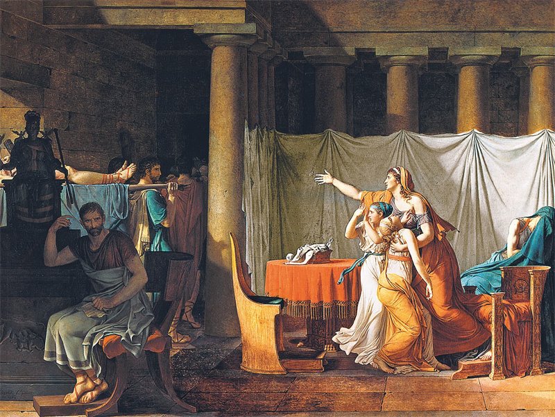 11 Жак-Луи Давид. Ликторы, приносящие Бруту тела его сыновей. 1789. Холст, масло. 323 × 422 см