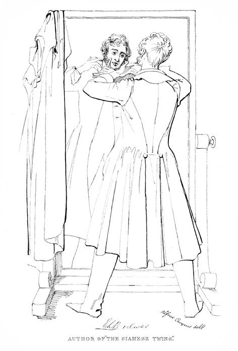 Другие негативные примеры мужчин-писателей проявляются в портретах Роберта Монтгомери (№ 20), автора популярной поэмы «Вездесущность Божества и Сатаны» (The Omnipresence of the Deity and of Satan), который самовлюбленно смотрит на себя, восхищаясь собственными байроническими локонами, Эдуарда Булвера-Литтона (№ 27), изображенного на портрете байроническим денди, подстригающим бакенбарды перед большим зеркалом, и Бенджамина Дизраэли (№ 36), в чьем портрете подчеркнуты девичьи локоны, большие глаза и тонкая талия (рис. 5 и 6)21. Как поясняет Фишер, эти сатирические портреты обличают вялых и безвольных писателей-мужчин, они отражают «сексуальные и социальные тревоги», которые вызывали авторы-денди своими томными позами, щегольскими одеждами и женоподобными чертами лица. Тем не менее эти писатели были в действительности популярны, продуктивны и профессиональны – и, возможно, вовлечены в профессионализацию литературы не меньше, чем фрейзериане. Например, Булвер-Литтон активно продвигал «Закон об авторском праве на публичное исполнение драматических произведений» (Dramatic Copyright Act) 1833 года, целью которого было обеспечить автору «любой трагедии, комедии, пьесы, оперы, фарса или другого произведения для театра» исключительное право на него; с 1837 по 1842 год он выступал за национальную реформу авторского права, которую большинство авторов считали необходимой для укрепления основ своей профессии)a.
