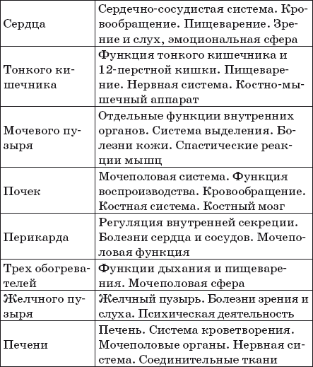 Из названия каналов можно представить, какими органами и системами он главным образом управляет. Основных энергетических каналов всего 12, поэтому сфера влияния каждого канала обширна.