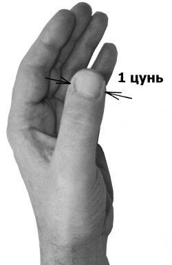 Чтобы определять месторасположение канальных точек, воспользуемся общей для всех людей пропорциональной единицей 1 цунь.