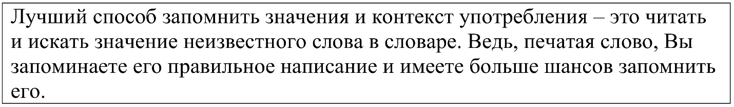 Очень важным моментом является то, что, встречая незнакомые выражения, необходимо искать их перевод не по одному слову, а именно по слову вместе с предлогом, так как именно их сочетание может иметь смысл, отличный от их раздельного перевода.