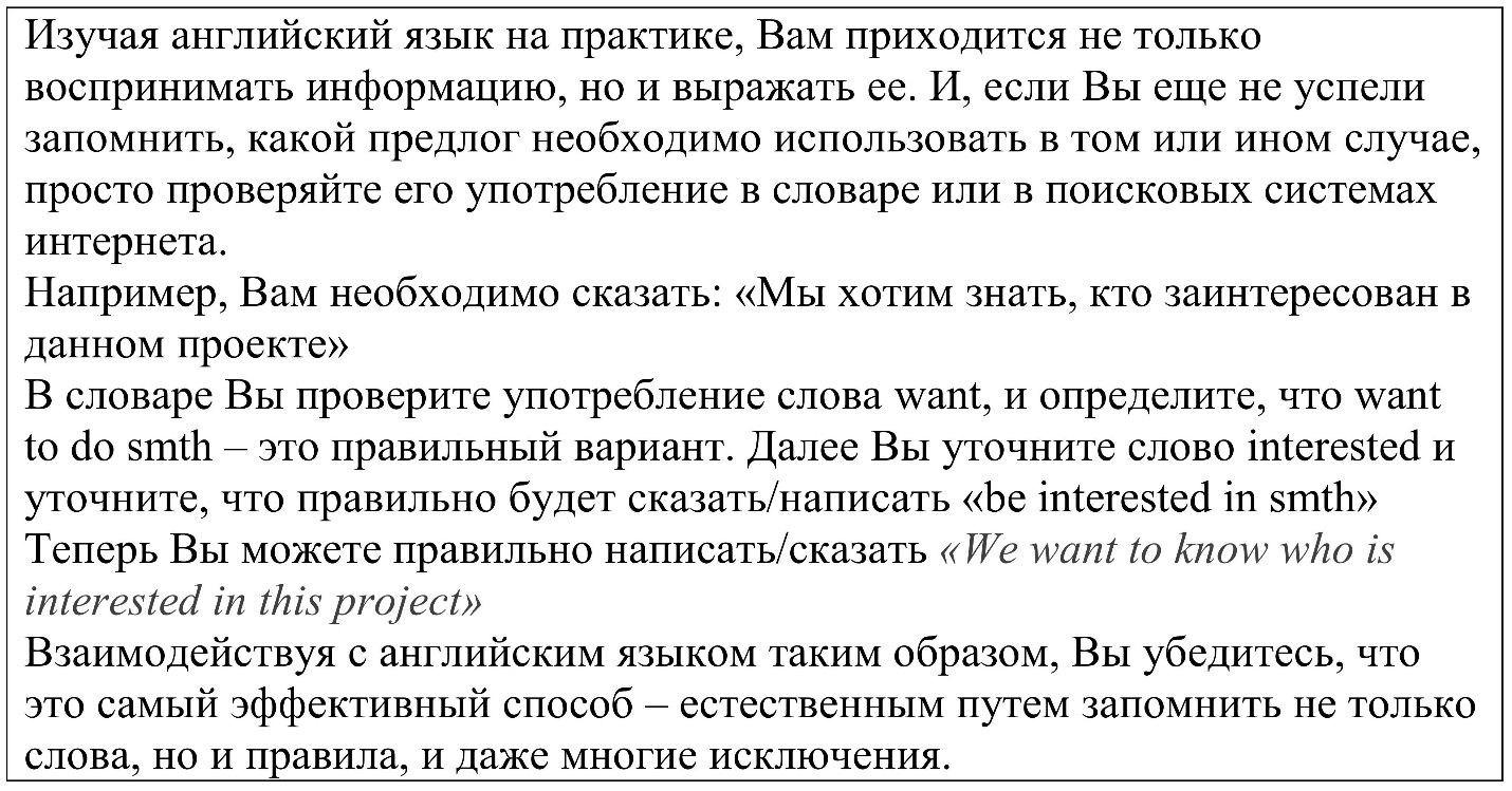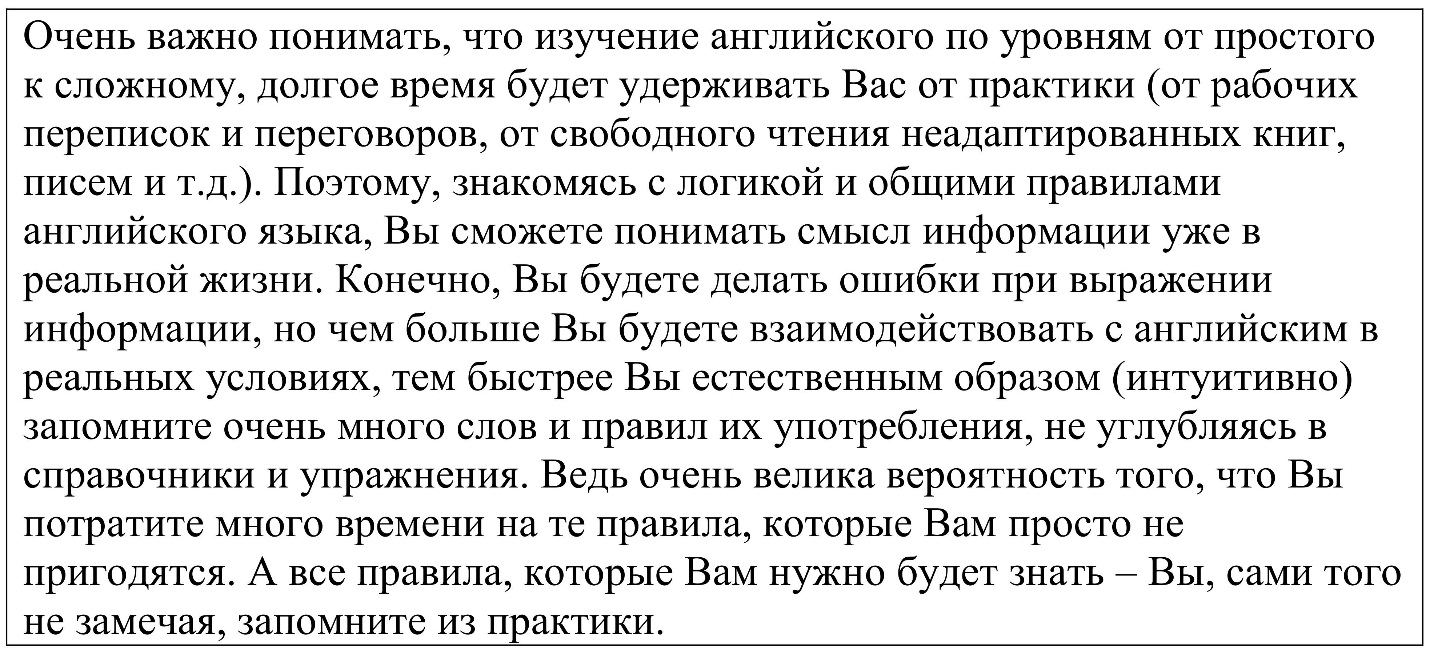 Но Вам нужно, в первую очередь, понять основной и незыблемый принцип, которого будет вполне достаточно для эффективного и легкого взаимодействия с английским.