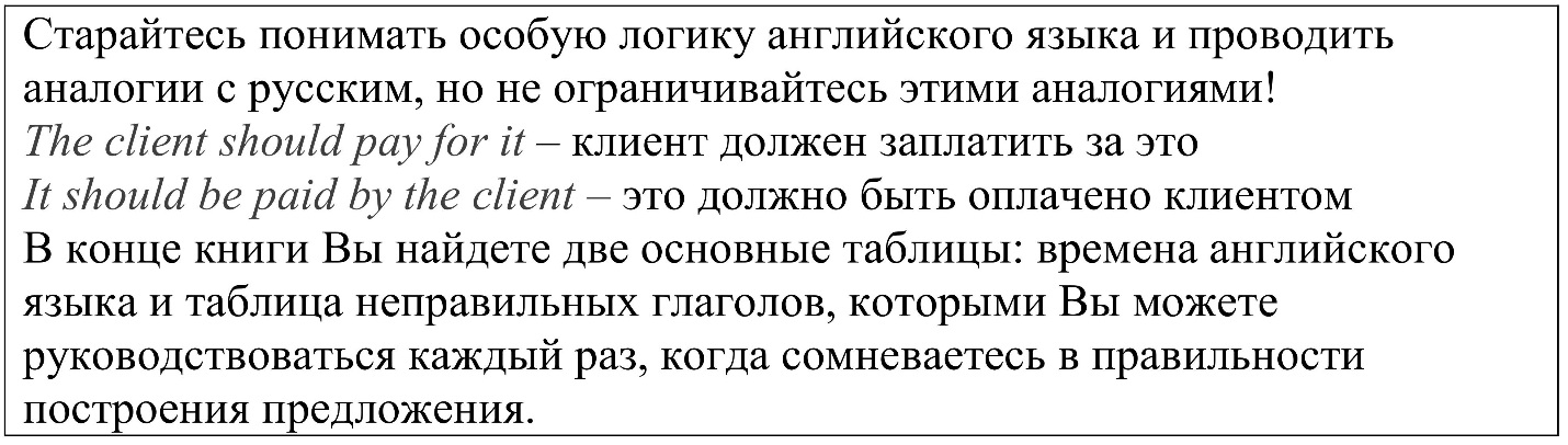 С другими придаточными оборотами Вы ознакомитесь на практике и быстро поймете их логику, поэтому их примеры не будут приведены в данной книге.