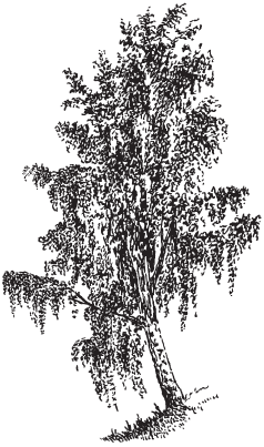Береза – дерево, высотой не превышающее 20 м. Ствол березы прямой, белый и гладкий, с черными линиями на коре, нижняя часть ствола черная. У молодых деревьев кора коричневатая. Ветви тонкие, со смолистыми бо родавками, густые и хорошо развитые. У старых деревьев ветви повислые (рис. 1).