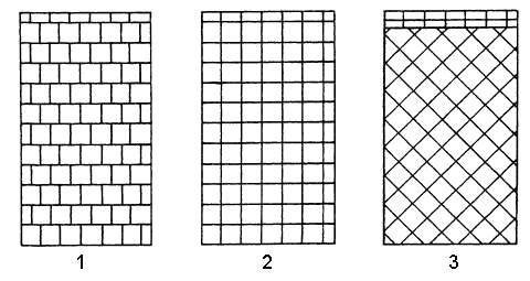 Рис. 7. Типы укладки плитки: 1 – «вразбежку»; 2 – «шов в шов»; 3 – по диагонали