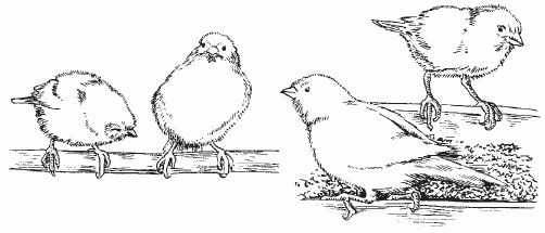 Птенцы, только что вылетевшие из гнезда, по оперению похожи на самок, но имеют более тусклую окраску.