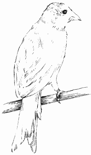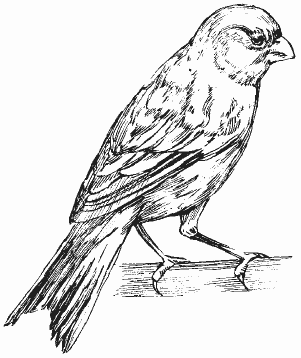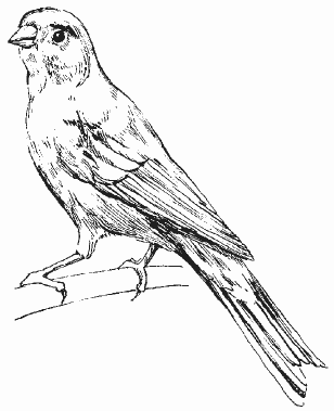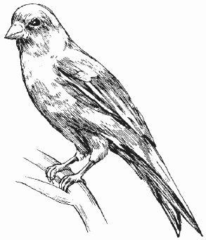 Канареечный рисунок очень простой. Он представляет собой темную (черного или коричневого цвета) полосу, идущую вдоль стрежня, а по краю опахала обведенную каймой более светлого оттенка. Подобный рисунок обычно бывает на перьях спины, боков, крыльев и хвоста канареек меланинового ряда.
