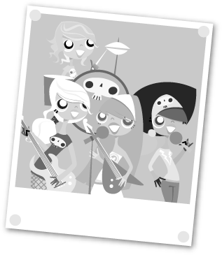 “Really?” I say. “That would be awesome! We could go shopping for costumes, record our demo and take snaps of us as a girl group! It’ll make a perfect story for the next issue of the zine too!”