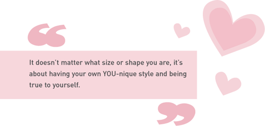 While these contradictions might be confusing to others, they are the things that make you individual so make sure you hug them up because, where style is concerned, there really are no rules. It doesn’t matter what size or shape you are, it’s about having your own YOU-nique style and being true to yourself. Think Pink, princess, and set your own trends. Work on the principle that whether it’s this season or football season, style is not about rules, it’s about the endless possibilities.