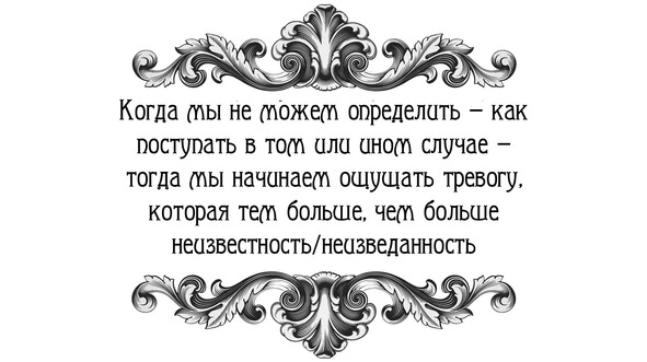Когда мы не можем определить – как поступать в том или ином случае – тогда мы начинаем ощущать тревогу, которая тем больше, чем больше неизвестность/неизведанность предмета или явления.