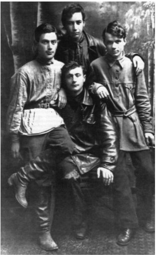 В 1919 году 16-летний Светлов (сидит в центре) был назначен заведующим отделом печати Екатеринославского (Днепропетровского) губкома КСМУ