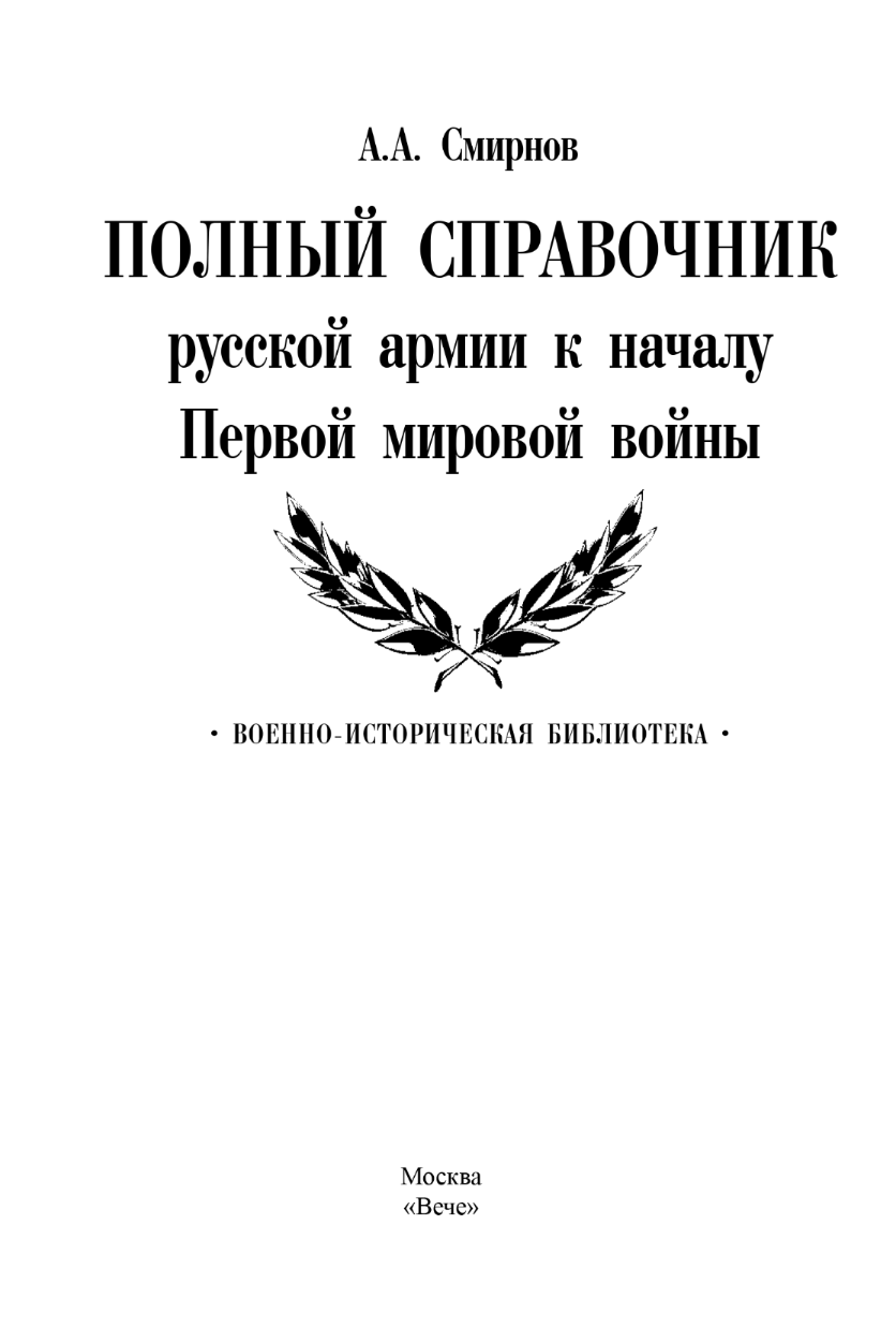 1 Императорская Гвардия. Изд. 2-е. Испр. и доп. под ред. В.К. Шенк. По 1-е Мая 1910 года. Справочная книжка Императорской Главной Квартиры. СПб., 1910; Гренадерские и Пехотные полки. Изд. 2-е. Испр. и доп. под ред. В.К. Шенк. По 1-е Апреля 1909 года. Справочная книжка Императорской Главной Квартиры. СПб., 1909; Дополнение к Справочной книжке Императорской Главной Квартиры «Гренадерские и Пехотные полки» (181-й – 208-й пехотные полки). По 1-е Июля 1912 г. СПб., 1912; Стрелковые части. Изд. 2-е. Испр. и доп. под ред. В.К. Шенк. По 10-е Февраля 1910 года. Справочная книжка Императорской Главной Квартиры. СПб., 1910; Кавалерия (кроме Гвардейских и Казачьих частей). Изд. 2-е. Испр. и доп. под ред. В.К. Шенк. По 27-е Июня 1909 года. Справочная книжка Императорской Главной Квартиры. СПб., 1909; Казачьи войска (Хроники гвардейских казачьих частей помещены в книге Императорская Гвардия). Под ред. В.К. Шенк. Сост. В.Х. Казин. По 1-е Апреля 1912 года. Справочная книжка Императорской Главной Квартиры. СПб., 1912; Артиллерия. Сост. В.В. Квадра. Испр. и доп. под ред. В.К. Шенк. По 20-е Марта 1909 года. Справочная книжка Императорской Главной Квартиры. СПб., 1909; Звегинцов В.В. Русская армия 1914 г. Подробная дислокация, формирования 1914–1917 гг., регалии и отличия. Париж, 1959; Звегинцов В.В. Формы русской армии 1914 г. Описание, рисунки, схемы. Париж, 1959; Звегинцов В.В. Русская армейская кавалерия 1907–1914. М., 1998; Леонов О.[Г.], Ульянов И.Э. Регулярная пехота 1855–1918. М., 1998; Залесский К.А. Первая мировая война. Биографический энциклопедический словарь. М., 2000.