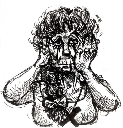 Солисия начинает плакать- хвататься за лицо, заламывать руки. Она бесшумной походкой идет на аванс-сцену и садится на колени, рыдает еще сильнее. Весь свет выключается, только один прожектор светит на Солисию.