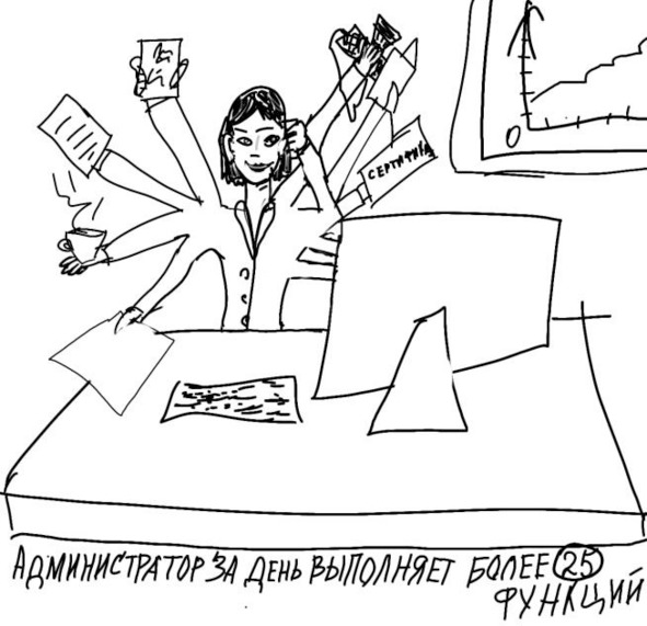 Вы ответите: «А, что такого сложного в том, чтобы отвечать на звонки и рассчитывать клиента»? Немногие задумываются о том, что администратор за свой рабочий день выполняет более 25 функций: