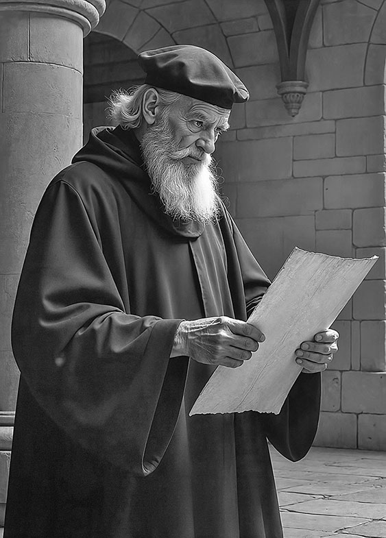 От меня сейчас, гордо подняв голову и бросая в мою сторону неодобрительные взгляды, отходил высокий старик в черной мантии и шапочке того же цвета. Двигался он к столу, заваленному кусками кожи, часто оборванными по краям, на которых виднелись какие-то надписи…