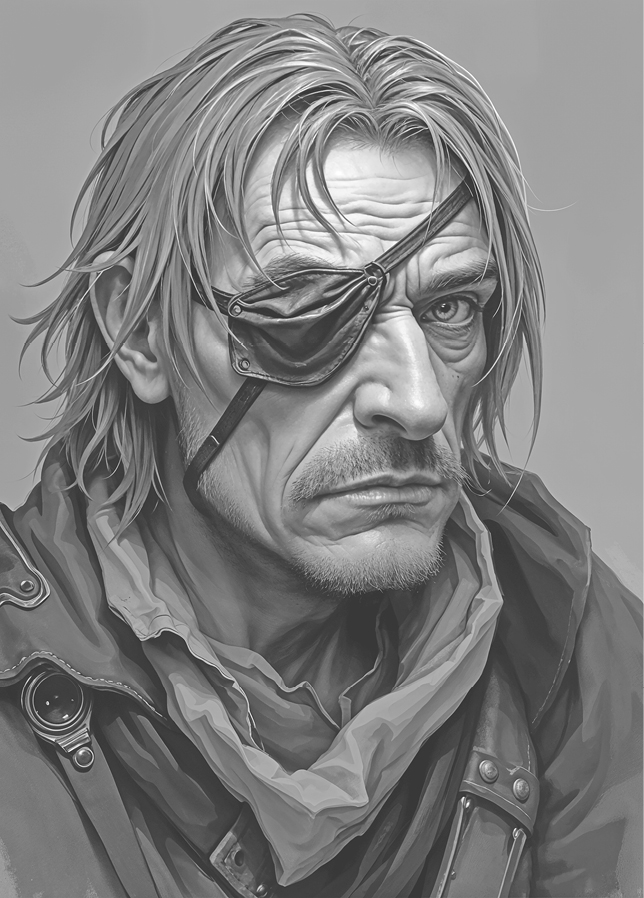 С этими словами он надел на свое лицо черную повязку, прикрывающую выбитый глаз, и плотно затянул завязки на затылке.