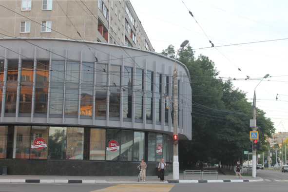 Про дом ворошиловских стрелков, который еще называют Домом красных командиров. Это здание было построено по проекту архитектора В. Анфёрова в 1935 г. Здание из пяти этажей представляет собой прямоугольный треугольник, его стороны образуют набережная Степана Разина, улица Вольного Новгорода и Тверской проспект. В 1938—1940 гг. в доме располагался штаб Калининского военного округа. До 1941 г. в здании разместился военно-педагогический институт. Во время войны здесь опять разместился штаб, а потом – госпиталь. После войны здание передали Академии химической защиты, потом он стал выполнять роль жилого комплекса и административного корпуса Военной академии ПВО. Сегодня здесь находятся общежитие и гостиница Академии.