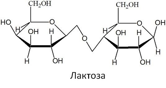 Дисахарид лактоза содержится в молоке и состоит из D-галактозы и D-глюкозы.