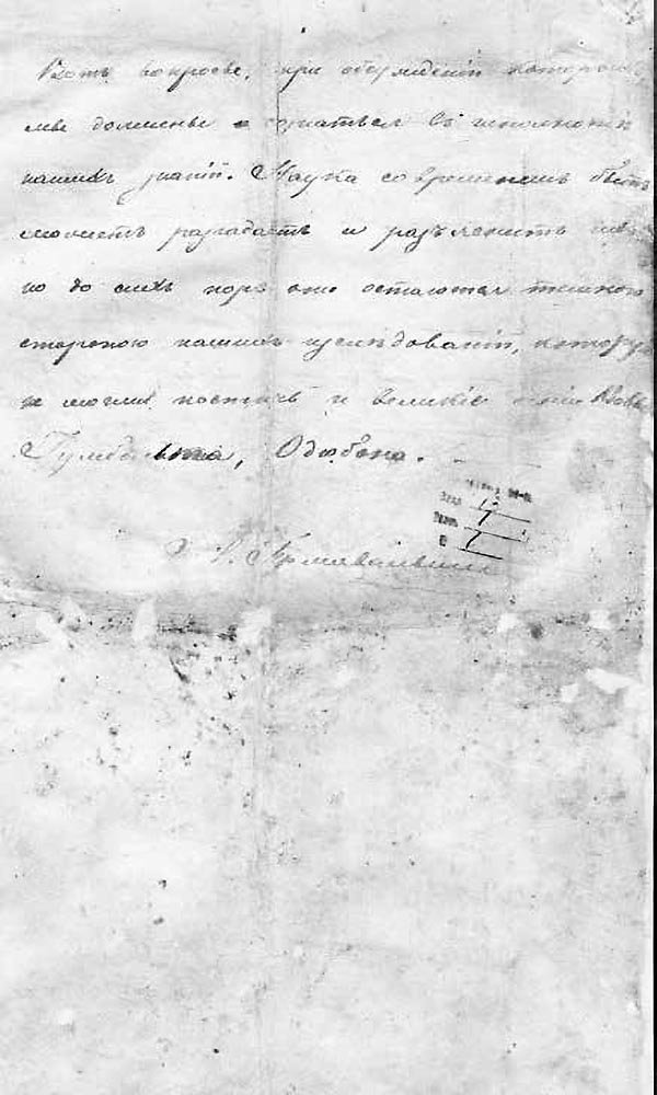 Конечно, и здесь, и там можно встретить много исключений, но они необходимо должны быть, потому что дурные начала слишком глубоко пустили свои корни и зло ‹нрзб.› десятками лет, не может быть, конечно, уничтожено быстро. [Кляксы или жирные пятна, невозможно прочесть.]