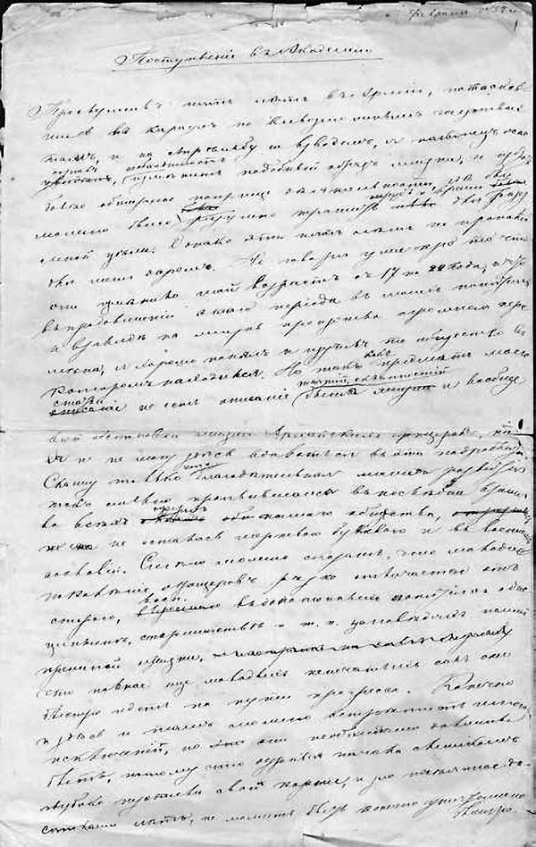 Не имея понятия о тех требованиях, которые встречу в Академии, я думал, что туда на экзамен можно явиться не иначе как изучивши глубоко каждый предмет, и потому усиленно занимался в продолжение почти целого года. Все предметы, кроме математики, к которой я питал… отвращение, и уставов, я знал очень хорошо, некоторые даже отлично.
