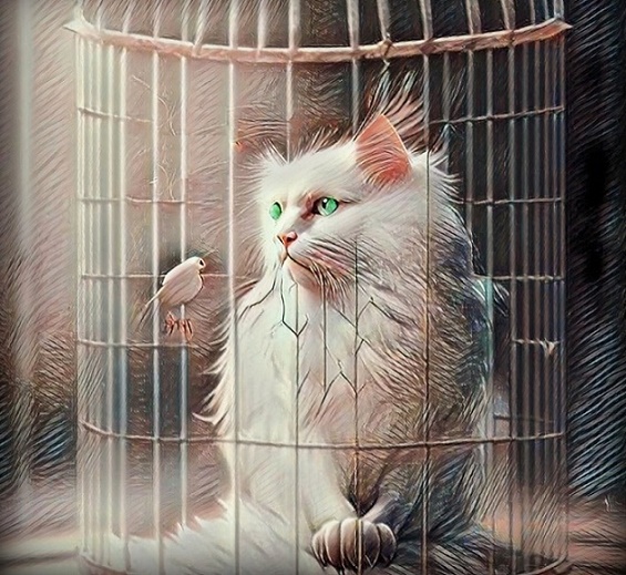 Клаус выдавал такие заливистые трели, что Маня и сама порой заслушивалась, предполагая, что и кот большой ценитель птичьего пения. Как же горько она ошибалась. Полив цветочные кашпо на панорамном окне Маня спустилась с углового дивана и отыскивая глазами тапки наткнулась взглядом на Снежка тот спокойно шел в сторону ресторана, и бережно нес в зубах…, Клауса. Маня вскрикнула. Снежок от неожиданности выронил канарейку, птаха ринулась к клетке, мигом влетела и забилась в угол. Как получилось, что дверка осталась открытой Маня понять не могла. Но возблагодарила господа, за дворянские манеры хоть и белоснежного, но вполне себе дворового кота-эстета, который нигде кроме личного ресторана не станет кушать даже заслуженную добычу. Историю Снежка Теодора рассказывала не раз. Подобрала котенка зимой на стоянке супермаркета «РИМИ». Комочек забился под коробку и молча дрожал. Он был настолько грязный, что предположить в нем обладателя белоснежной шубки можно было, только обладая исключительной фантазией. Теодора малыша отогрела, отмыла, выкормила из пипетки и разбаловала донельзя. Снежок категорически не хотел оставаться один дома даже на несколько часов, и колотил все, что оставалось на поверхностях и могло разбиться. Так в доме появился Клаус, Теодора с Янисом решили приобрести вреднуле компаньона. Из съедобного ассортимента Снежок отобрал самое дорогое меню, как будто знал толк в цифрах.