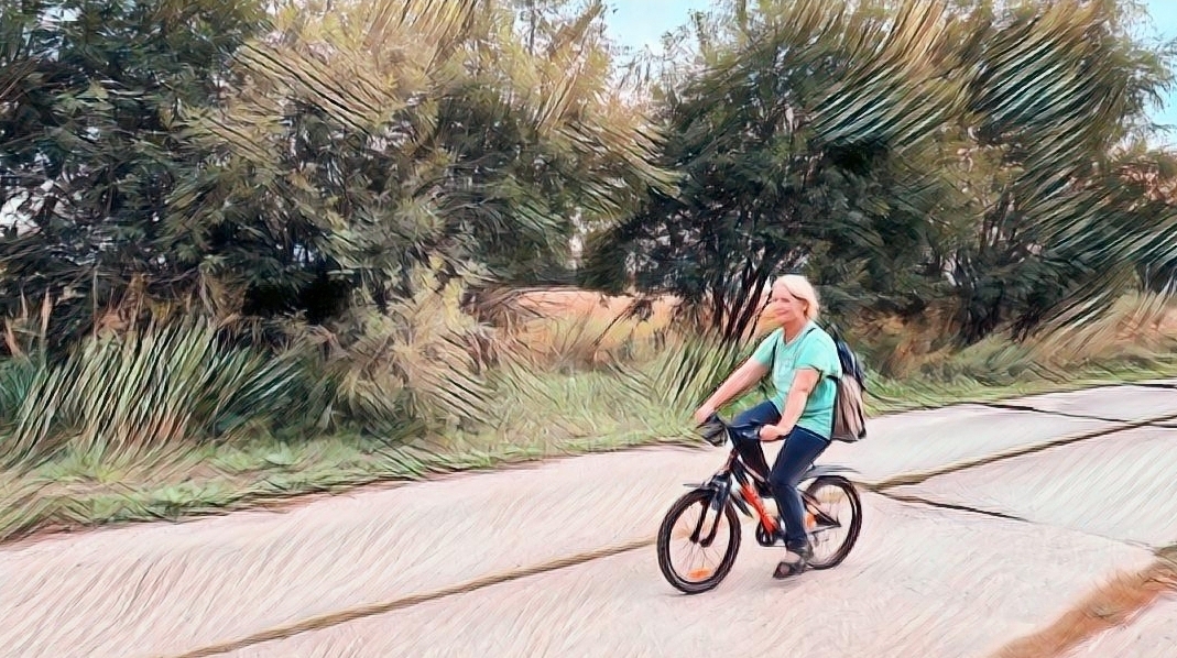 Педали крутились с трудом, на ее спортивном велосипеде предусмотрено переключение скоростей, но об этом надо было как минимум знать, а как максимум освоить их переключение на ходу. Вот и неслась она по дороге, выпучив от ужаса глаза то проваливаясь в ямки, то взлетая вверх, больно шлепаясь задом на жесткое велосипедное сидение.