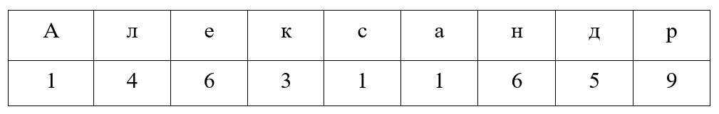 Теперь каждой букве имени присваиваем цифру согласно таблице. Для имени Александр у нас получилось: